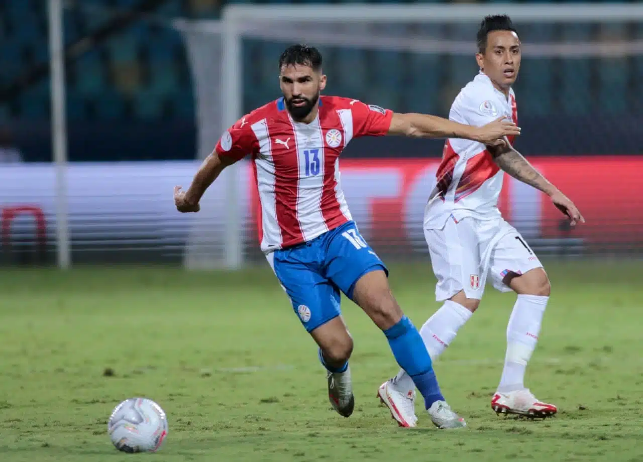 O empate paraguaio saiu aos oito minutos. Após cobrança de escanteio, a bola sobrou na segunda trave para o zagueiro Júnior Alonso. O defensor do Atlético-MG aproveitou a oportunidade e estufou as redes peruanas.